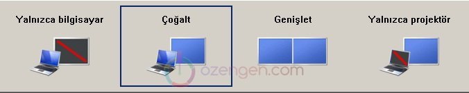 - Çoğalt: Aynı görüntü hem bilgisayarınızda hemde projeksiyon, tv gibi ikinci görüntüleme aygıtlarında görünür.