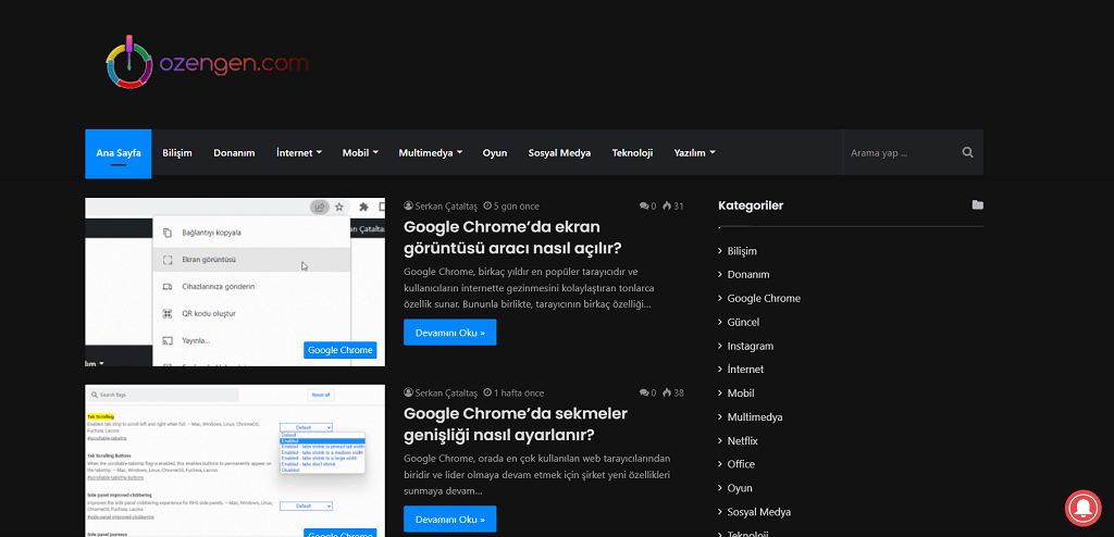 Chrome’da arka planı karartmak-siyah arka plan yapmak için aşağıdaki resimli anlatımı takip edebilirsiniz. Normalde temalar seçeneğini kullanarak Chrome’u siyah olarak kullanabilirsiniz fakat bu durumda web sitelerinin içeriği beyaz olarak görünmektedir.