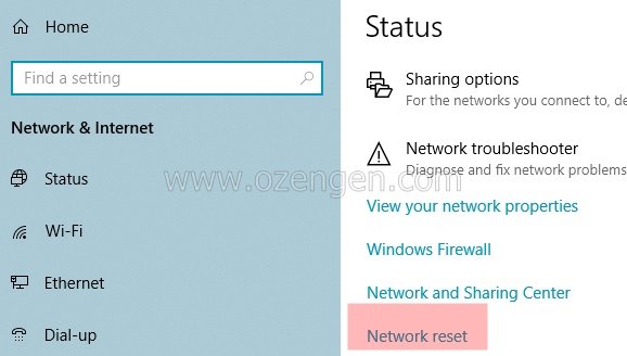 Windows 10 işletim sistemlerinde Ağ ayarlarını sıfırlama işlemi bu gibi hataları genellikle çözmektedir. Windows 10 sistemlerde Ayarlar / Ağ ayarları seçeneğine tıklayıp,