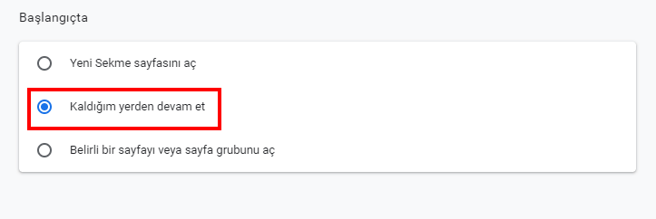 Burada “Kaldığım yerden devam et” seçeneğini işaretleyin.