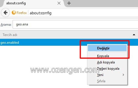 Mozilla firefox konum nasıl kapatılır ?
