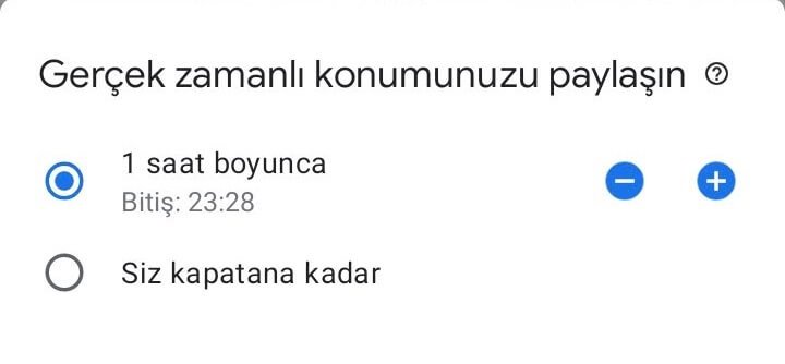 Gerçek zamanlı konumunuzu paylaşın seçeneğinde “Siz kapatana kadar” seçeneğini işaretleyerek, konum paylaşımının devamlı yapılmasını sağlayabilirsiniz.