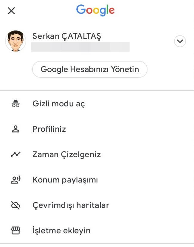 Eşinizin telefonunda Google Haritalar uygulamasına giriş yapın.