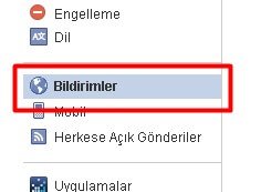 Tüm bildirim ayarlarını düzenleyebilmek için solda açılan menüden “Bildirimler” seçeneğine tıklıyoruz.