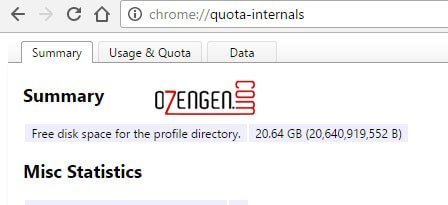 • chrome://quota-internals: Giriş yaptığınız sitelerin önbelleğinde ne kadar yer kapladığı da dahil olmak üzere Chrome tarafından ayrılmış ve aktif kullanılan disk alanı hakkında detaylı bilgi sunar.
