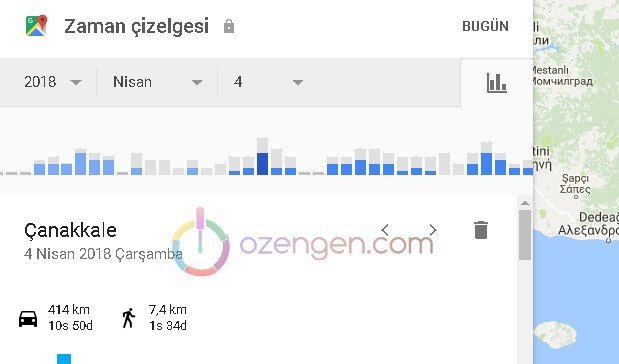 Ekranın sağ tarafından, Google haritalar üzerinde grafik olarak da bu ekranı görebilirsiniz. Ekranı aşağı kaydırdığınız zaman bu gezi hakkında veya o gün uğradığınız yerler hakkında detaylı bilgileri görebilirsiniz.