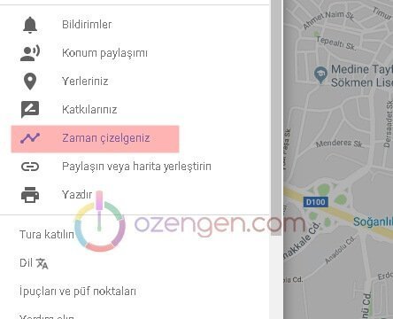 Konum geçmişi ekranına giriş yapmak için tıklayın. Haritalar’a giriş yaptıktan sonra Google hesabınızı açıp, sol tarafda bulunan menülerden “Zaman çizelgeniz” seçeneğine tıklayarak da giriş yapabilirsiniz.