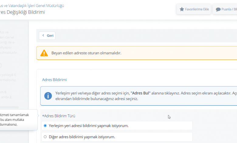 İkametgah (Adres) değişikliği artık Edevlet üzeriden kolaylıkla yapılmaktadır. Eğer edevlet üzerinden bir hata ile karşılaşırsanız, nufus müdürlüklerine giderek ikametgah değişikliği taleplerinizi iletebilirsiniz. Adres değişikliklerinde özellikle son zamanlarda “Beyan edilen adreste oturan olmamalıdır” hatası ile çok sık karşılaşılmaktadır.
