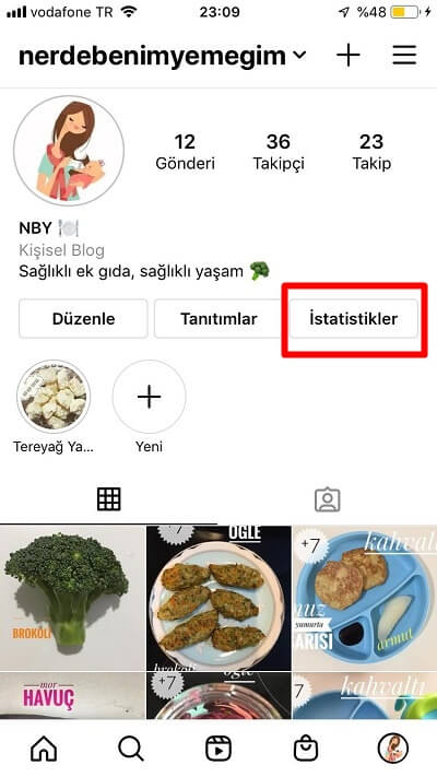2. Profil ekranında bulunan “İstatistikler” seçeneğine dokunun.