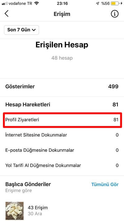 İşletme hesabına geçiş yaptıktan sonra aşağıdaki adımları takip ederek, profil ziyaretleri ve daha fazla birçok bilgiye ulaşabilirsiniz.