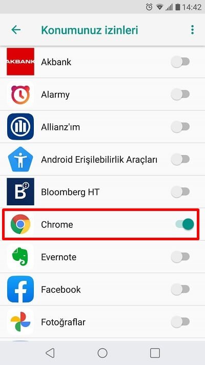 Konum izinleri açık olan uygulamaları bu ekranda görebilir ve dilerseniz konum iznini kapatabilirsiniz.