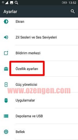 Telefonumuzun Ayarlar / Özellik ayarları seçeneğine giriş yapıyoruz.
