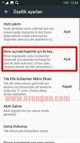 Ekranı çift dokunarak kapatıp açma, hem oldukça kullanışlı bir özelliktir, hemde cihazınızın tuş ömrünü uzatmanıza yaramaktadır. Birçok launcher ile bu işlemi yapabilirsiniz fakat telefonda bu özellik varsa launcher kurmamıza veya herhangi bir uygulama kullanmamıza gerek kalmayacaktır. Lenovo telefonlarda özelliği açmak için aşağıdaki resimli anlatımımızı uygulayabilirsiniz.