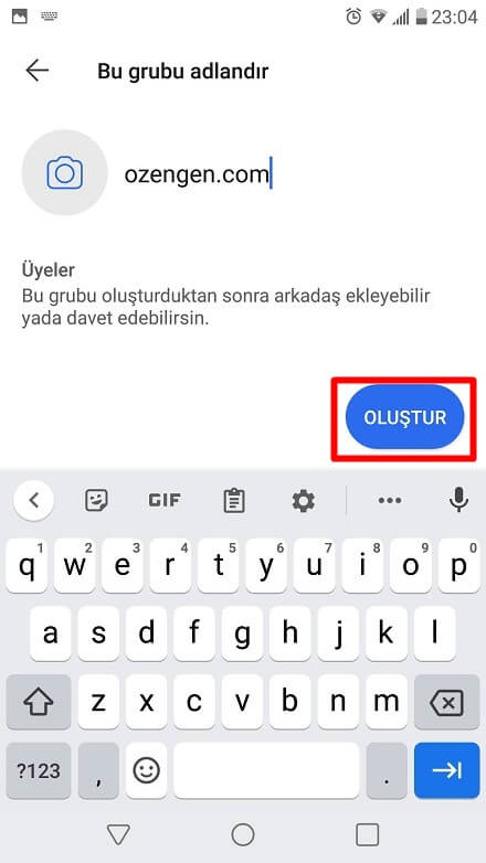 Grup adı ve grup resmi seçerek “Oluştur” seçeneğine dokunun. Hepsi bu kadar grup oluşturuldu.