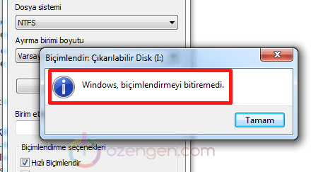 Windows biçimlendirmeyi bitiremedi hata çözümü