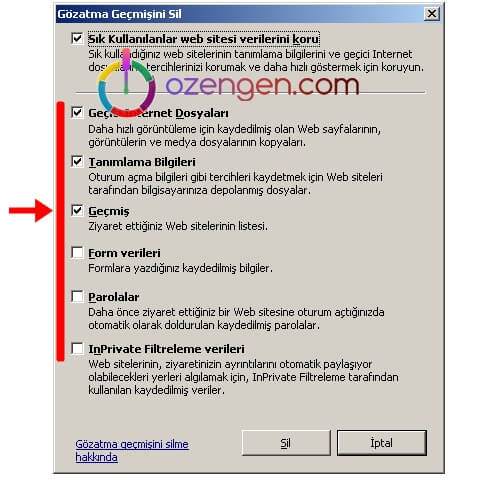- Gizlilik sekmesine geliyoruz. Ardından “tüm mevcut geçmişinizi de silebilirsiniz.”yazısına tıklıyoruz.