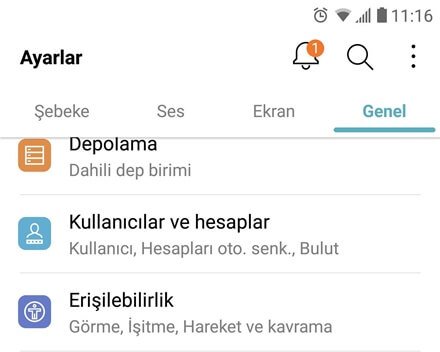 Telefonunuzun Ayarlar seçeneğine girerek “Kullanıcılar ve hesaplar” seçeneğine dokunun. Bazı marka ve modellerde bu seçenek farklı isimle görülebilir.
