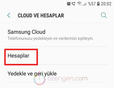 Samsung marka telefonlarda “Ayarlar / Cloud ve hesaplar / Hesaplar” seçeneklerine dokunun.