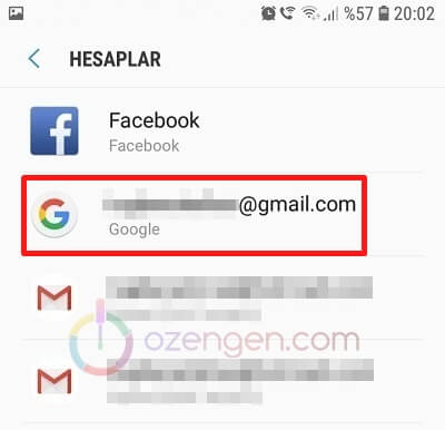 Hesaplar seçeneğinede Google hesabınıza dokunun.