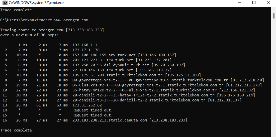 Traceroute (tracert) komutu nedir ve ne işe yarar?