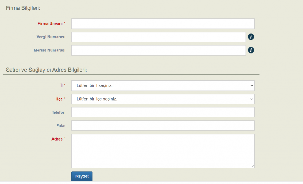 Satıcının adres bilgilerini girin. Bu bilgilerin doğru ve eksiksiz girilmesi önemlidir.
