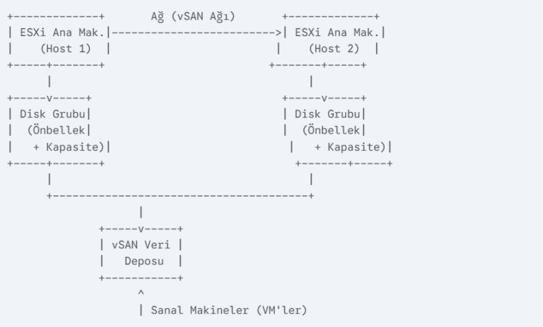 - Hiper Bütünleşik Altyapı (Hyper-Converged Infrastructure – HCI): vSAN, işlem ve depolama kaynaklarını aynı fiziksel sunucularda birleştirerek HCI mimarisinin temel bir bileşenini oluşturur. Bu yaklaşım, altyapı yönetimini basitleştirir ve kaynak kullanımını optimize eder.