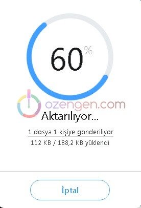 Dosyanız yükleme aşamasındayken “Aktarılıyor” uyarısını göreceksiniz. Bu aşamada dosyaların tamamının yüklenmesini bekleyiniz. Durum ekranında yükleme yüzdesini görebilirsiniz.