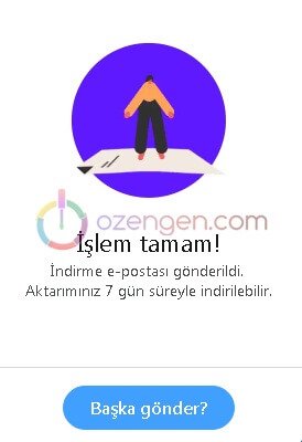 İşlem tamam! uyarısını gördüğünüz zaman dosyanız gönderilmiştir. Mail adresini yazdığınız kişi, mail kutusunu kontrol ettiği zaman “** sent you files via WeTransfer” başlığı ile dosya indirme linki gönderilmiş olacaktır.