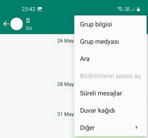 Sağ üst köşede bulunan 3 nokta simgesine dokunarak “Grup bilgisi” seçeneğine giriş yapın.