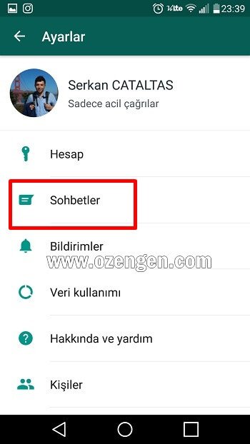 Paylaşmak istediğimiz sohbet ekranını açıyoruz.