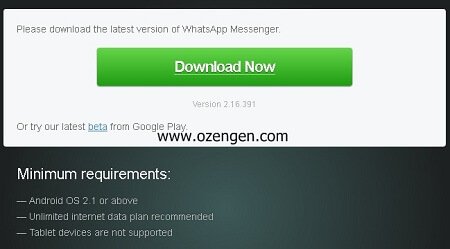 Whatsapp resmi sayfasında apk dosyasını , mobil cihazınız ile indirerek manuel olarak yükleme işlemini yapabilirsiniz. Eğer cihazınızla uyum problemi yoksa herhangi bir sorun yaşamadan yüklüyor olmanız gerek. Eğer hala sorun giderilmediyse aşağıdaki adımları deneyin.
