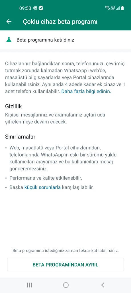 Sınırlamalar; web, masaüstü veya portal cihazlarından, telefonlarında Whatsapp’ın eski bir sürümü yüklü kullanıcıları ayaramaz ve bu kullanıcılara mesaj gönderemezsiniz. Performans ve kalite etkilenebilir. Başka küçük sorunlarla karşılaşılabilir.