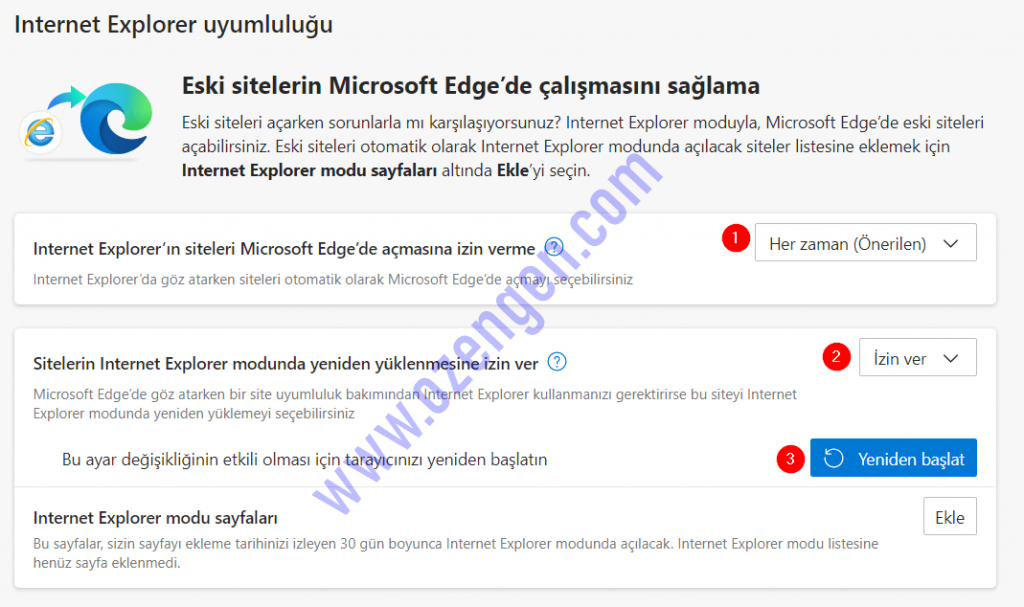 IE destekli siteleri, Edge’de açabilmek için aşağıdaki resimli anlatımı takip edebilirsiniz.