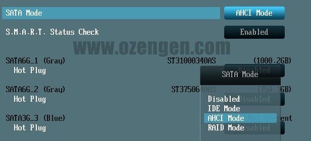 Asus anakartlarda Sata mode menüsü altında seçeneğe ulaşabilirsiniz. Seçeneğe gelip ENTER’a bastıktan sonra IDE Mode seçebilirsiniz.