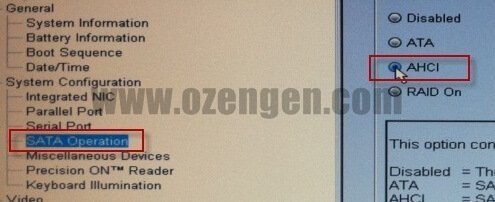 Dell bilgisayarlarda Sata Operation seçeneği altında ATA seçeneğini seçebilirsiniz.