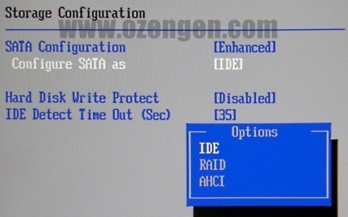 Alternatif olarak bios ayarlarında AHCI/RAID/SATA modunu IDE moduna seçerseniz kurulumu sorunsuz olarak yapabilirsiniz. Genellikle bu menü Storage Configuration seçeneği altındadır.