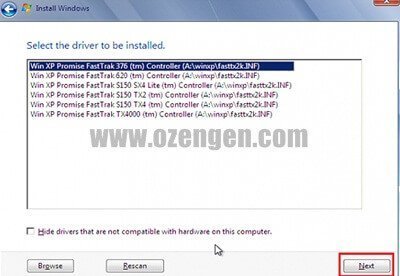 Sata driver’ları seçtikten sonra hemen altta bulunan;