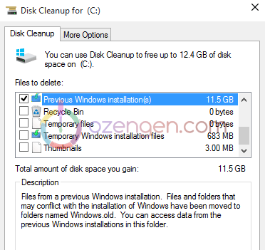 - Disk Temizleme iletişim kutusunda, Disk Temizleme sekmesinde, Sistem dosyalarını temizle‘yi tıklatın. Önceki Windows yüklemeleri seçeneğini işaretleyin. Tüm seçenekleri de işaretleyebilirsiniz.