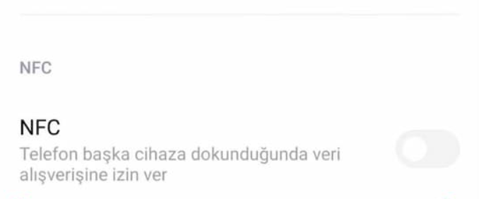 Ekranı aşağı doğru kaydırın NFC seçeneğini aktif hale getirin.