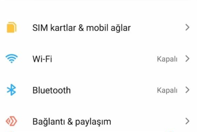 Ayarlar / Bağlantı ve paylaşım seçeneklerine tıklayın.