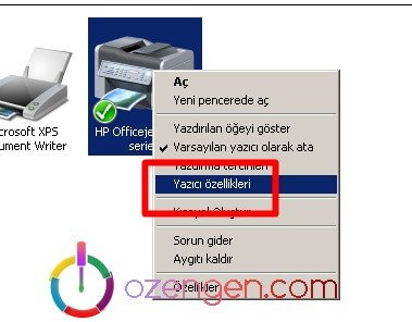 Paylaştırmak istediğiniz printer’a sağ tıklayarak Yazıcı özellikleri seçeneğine tıklayın.